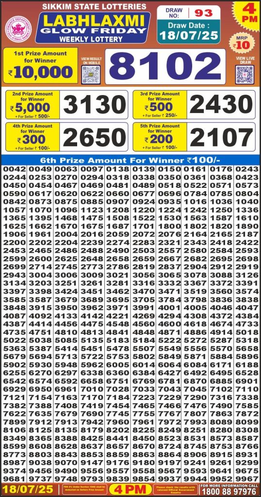 Labhlaxmi glow friday weekly lottery 4 pm result 18-7-25 Results Editorial Staff July 18, 2025 Leave a Comment on Labhlaxmi glow friday weekly lottery 4 pm result 18-7-25 Posted in Labh Laxmi Lottery 4PM Result Share: XFacebookPinterestRedditVKDiggLinkedinMix Labh Laxmi Power Sunday 4PM Lottery Result Update 📅 Date: 18 July 2025 ⏰ Draw Time: 4:00 PM 🟢 Result Declared 🔗 View previous Labh Laxmi Lottery 4PM Result results Related Results Labh Laxmi Bliss Monday Weekly Lottery 4pm Result 02-03-26 Labh Laxmi Power Sunday Weekly Lottery 4pm Result 01-03-26 Labh Laxmi Joy Saturday Weekly Lottery 4pm Result 28-02-26 Labh Laxmi Glow Friday Weekly Lottery 4pm Result 27-02-26 Labh Laxmi Glad Thursday Weekly Lottery 4pm Result 26-02-26 Labh Laxmi Delight Wednesday Weekly Lottery 4pm Result 25-02-26 Labh Laxmi Charm Tuesday Weekly Lottery 4pm Result 24-02-26 Author: Results Editorial Staff