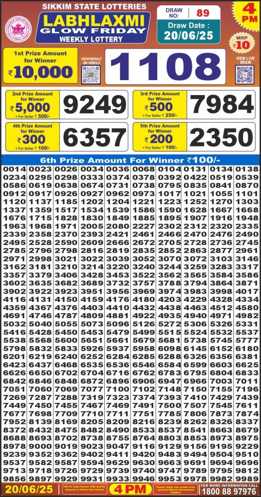 Labhlaxmi glow friday weekly lottery 4 pm result 20-6-25
