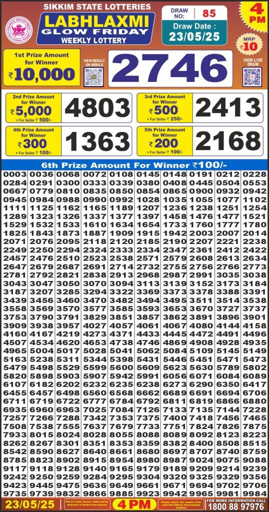 Labhlaxmi glow friday weekly lottery 4 pm result 23-5-25