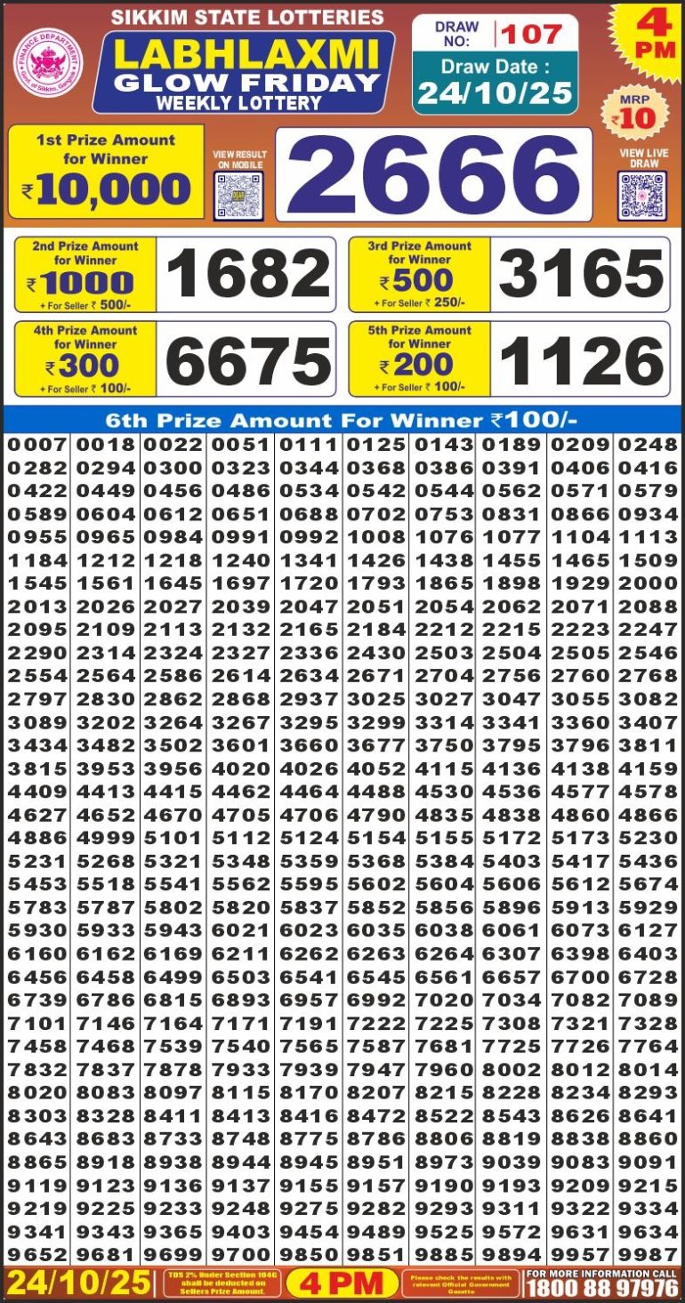 Labhlaxmi Glow Friday Weekly Lottery 4 PM Result 24-10-25 0 Likes 2 Views Share now: XFacebookPinterestRedditVKDiggLinkedinMix Related Articles 0 4 Labhlaxmi glow friday weekly lottery 4 pm result 27-6-25 0 2 Labh Laxmi Delight Wednesday Weekly Lottery 4 PM Result 06-08-25 0 6 Labhlaxmi glow friday weekly lottery 4 pm result 18-4-25 0 3 Labhlaxmi Glow Friday Weekly Lottery 4 PM Result 26-09-25