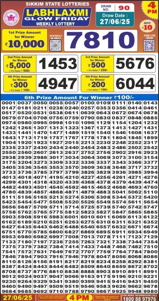 Labhlaxmi glow friday weekly lottery 4 pm result 27-6-25 Results Editorial Staff June 27, 2025 Leave a Comment on Labhlaxmi glow friday weekly lottery 4 pm result 27-6-25 Posted in Labh Laxmi Lottery 4PM Result Share: XFacebookPinterestRedditVKDiggLinkedinMix Labh Laxmi Power Sunday 4PM Lottery Result Update 📅 Date: 27 June 2025 ⏰ Draw Time: 4:00 PM 🟢 Result Declared 🔗 View previous Labh Laxmi Lottery 4PM Result results Related Results Labh Laxmi Bliss Monday Weekly Lottery 4pm Result 02-03-26 Labh Laxmi Power Sunday Weekly Lottery 4pm Result 01-03-26 Labh Laxmi Joy Saturday Weekly Lottery 4pm Result 28-02-26 Labh Laxmi Glow Friday Weekly Lottery 4pm Result 27-02-26 Labh Laxmi Glad Thursday Weekly Lottery 4pm Result 26-02-26 Labh Laxmi Delight Wednesday Weekly Lottery 4pm Result 25-02-26 Labh Laxmi Charm Tuesday Weekly Lottery 4pm Result 24-02-26 Author: Results Editorial Staff