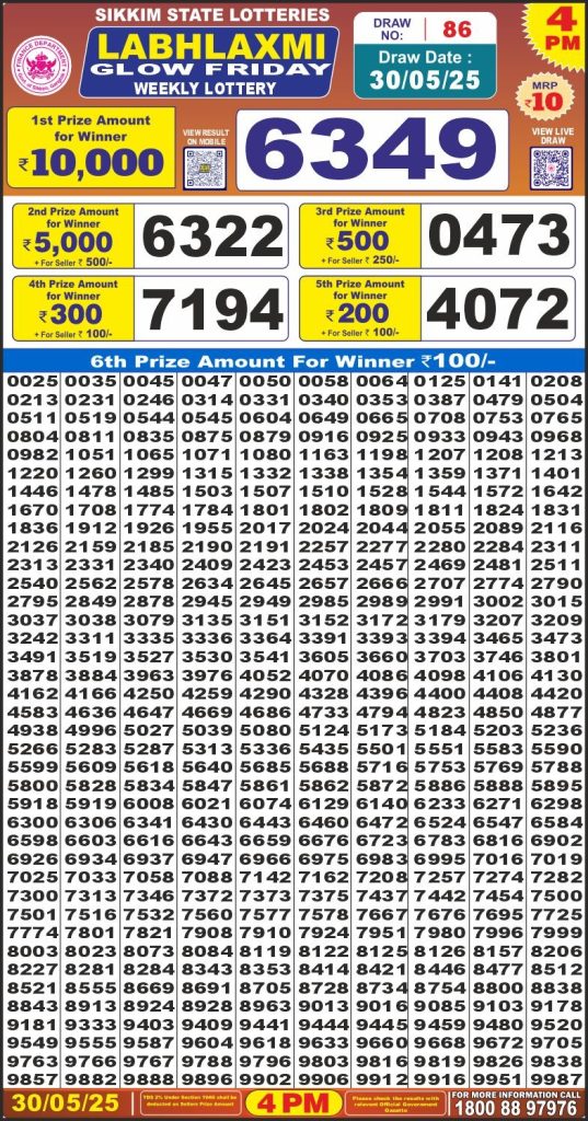 Labhlaxmi glow friday weekly lottery 4 pm result 30-5-25 Results Editorial Staff May 30, 2025 Leave a Comment on Labhlaxmi glow friday weekly lottery 4 pm result 30-5-25 Posted in Labh Laxmi Lottery 4PM Result Share: XFacebookPinterestRedditVKDiggLinkedinMix Labh Laxmi Bliss Monday 4PM Lottery Result Update 📅 Date: 30 May 2025 ⏰ Draw Time: 4:00 PM 🟢 Result Declared 🔗 View previous Labh Laxmi Lottery 4PM Result results Related Results Labh Laxmi Bliss Monday Weekly Lottery 4pm Result 02-03-26 Labh Laxmi Power Sunday Weekly Lottery 4pm Result 01-03-26 Labh Laxmi Joy Saturday Weekly Lottery 4pm Result 28-02-26 Labh Laxmi Glow Friday Weekly Lottery 4pm Result 27-02-26 Labh Laxmi Glad Thursday Weekly Lottery 4pm Result 26-02-26 Labh Laxmi Delight Wednesday Weekly Lottery 4pm Result 25-02-26 Labh Laxmi Charm Tuesday Weekly Lottery 4pm Result 24-02-26 Author: Results Editorial Staff