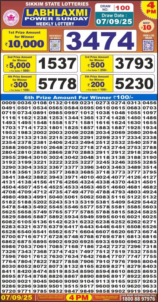 Labh Laxmi Power Sunday 4PM Lottery Result Update