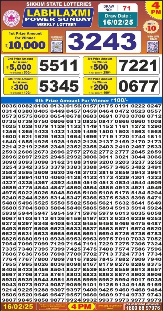 Labh Laxmi Power Sunday 4PM Lottery Result Update