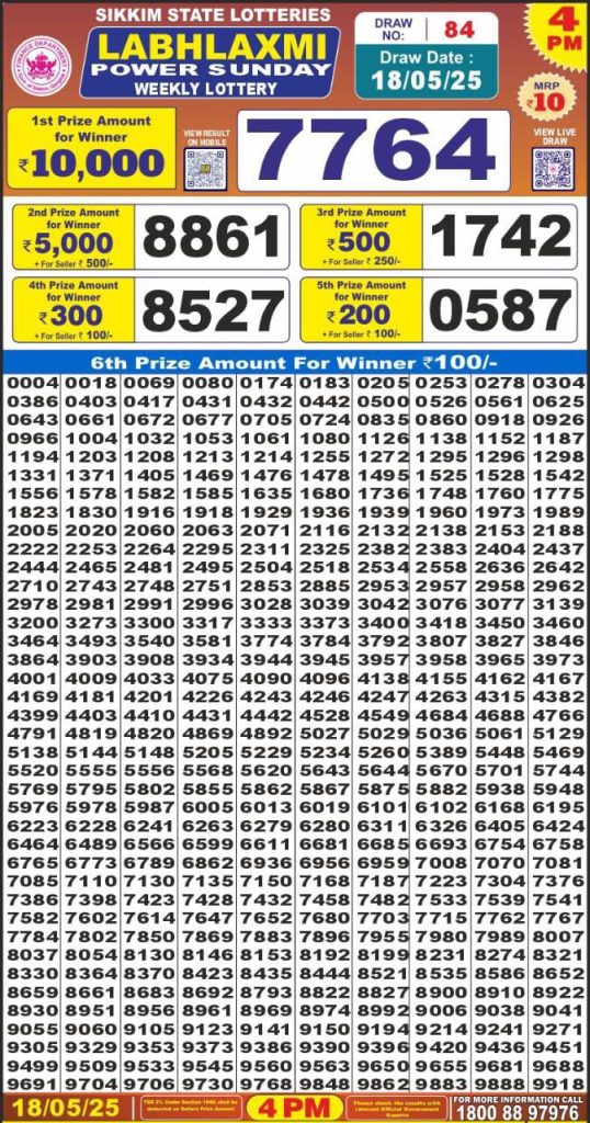 Labhlaxmi power sunday weekly lottery 4 pm result 18-5-25 Results Editorial Staff May 18, 2025 Leave a Comment on Labhlaxmi power sunday weekly lottery 4 pm result 18-5-25 Posted in Labh Laxmi Lottery 4PM Result Share: XFacebookPinterestRedditVKDiggLinkedinMix Labh Laxmi Bliss Monday 4PM Lottery Result Update 📅 Date: 18 May 2025 ⏰ Draw Time: 4:00 PM 🟢 Result Declared 🔗 View previous Labh Laxmi Lottery 4PM Result results Related Results Labh Laxmi Bliss Monday Weekly Lottery 4pm Result 02-03-26 Labh Laxmi Power Sunday Weekly Lottery 4pm Result 01-03-26 Labh Laxmi Joy Saturday Weekly Lottery 4pm Result 28-02-26 Labh Laxmi Glow Friday Weekly Lottery 4pm Result 27-02-26 Labh Laxmi Glad Thursday Weekly Lottery 4pm Result 26-02-26 Labh Laxmi Delight Wednesday Weekly Lottery 4pm Result 25-02-26 Labh Laxmi Charm Tuesday Weekly Lottery 4pm Result 24-02-26 Author: Results Editorial Staff