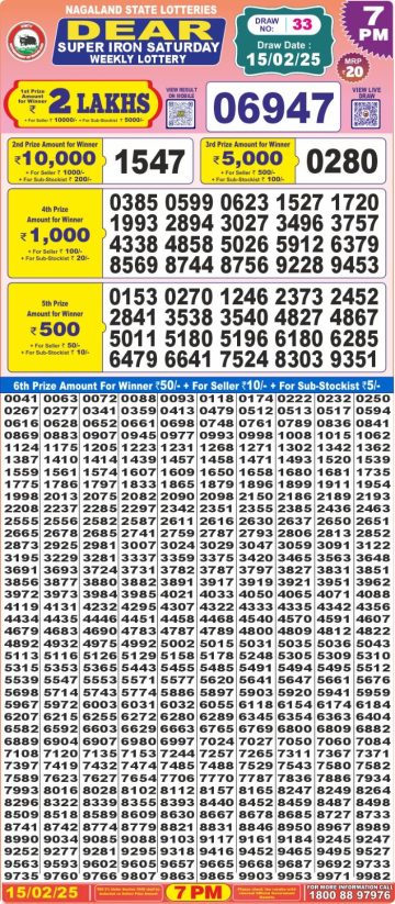 Dear super iron saturday weekly lottery 7 pm result 15-2-25