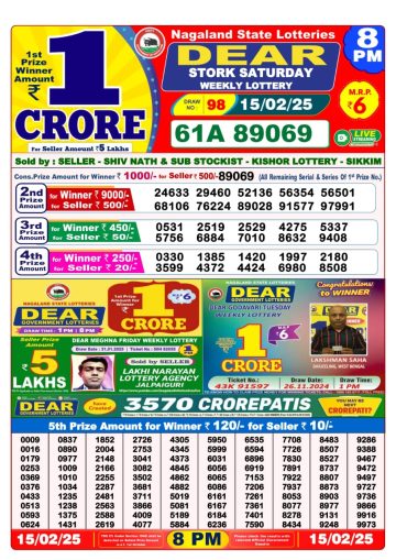 Dear stork saturday weekly lottery 8 pm result 15-2-25