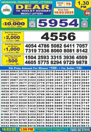 Dear 10 violet sunday weekly lottery 1:30 pm result 16-2-35