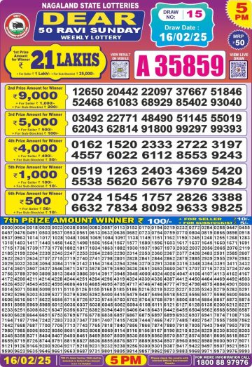 Dear 50 ravi sunday weekly lottery 5 pm result 16-2-25