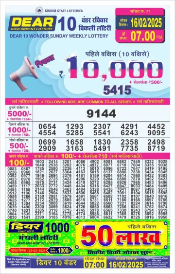 Dear 10 wonder sunday weekly lottery 7 pm result 16-2-25