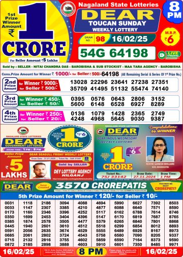 Dear toucan sunday weekly lottery 8 pm result 16-2-25