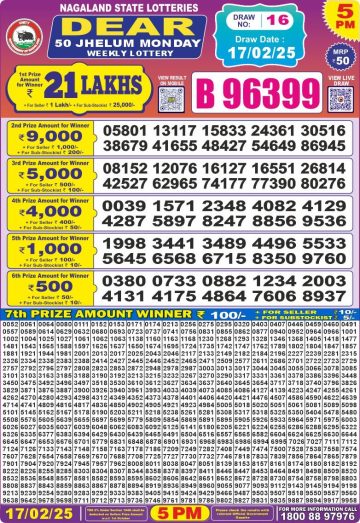 Dear 50 jhelum monday weekly lottery 5 pm result 17-2-25
