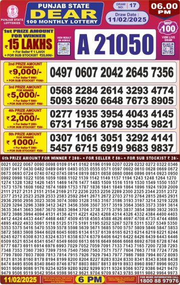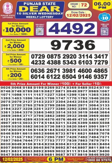 Punjab state dear 10 silver wednesday weekly lottery 6 pm result 12-2-25