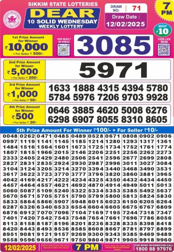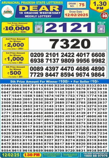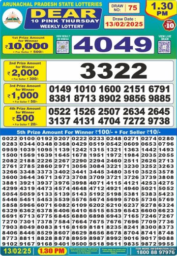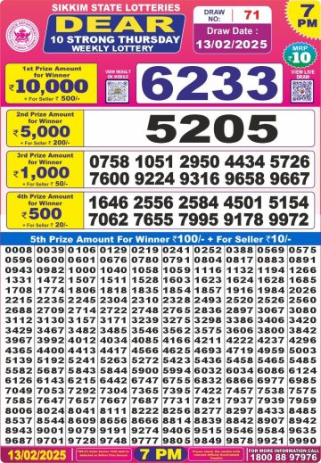 Dear 10 strong Thursday weekly lottery 7 pm result 13-2-25