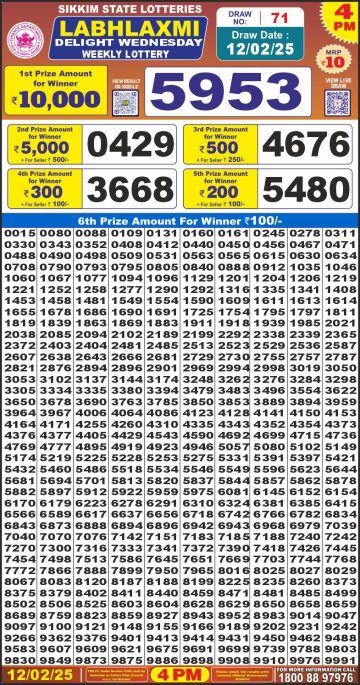 Labhlaxmi delight wednesday weekly lottery 4 pm result 12-2-25