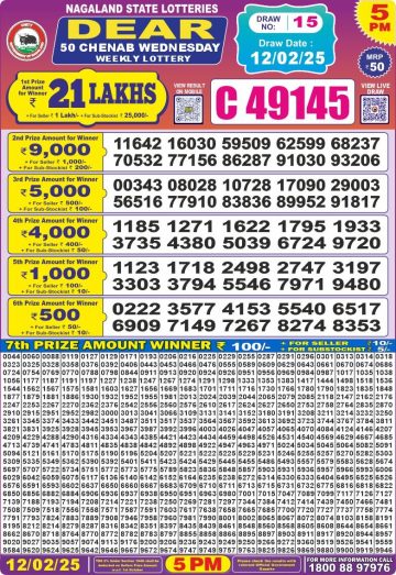 Dear 50 chenab wednesday weekly lottery 5 pm result 12-2-25