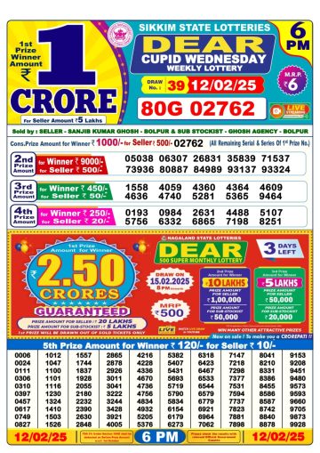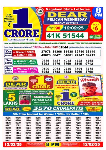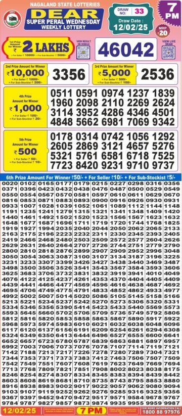 Dear super peral wednesday weekly lottery 7 Pm result 12-2-25