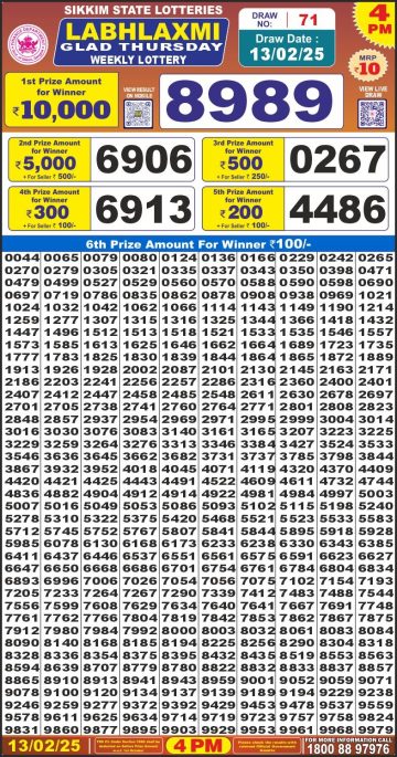 Labhlaxmi glad Thursday weekly lottery 4 pm result 13-2-25