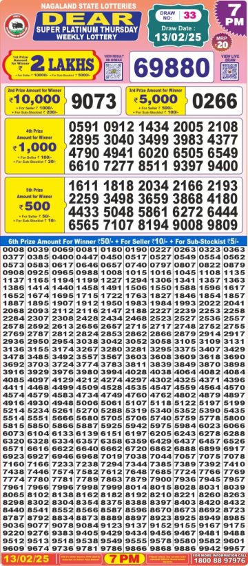 Dear super platinum Thursday weekly lottery 7 pm result 13-2-25