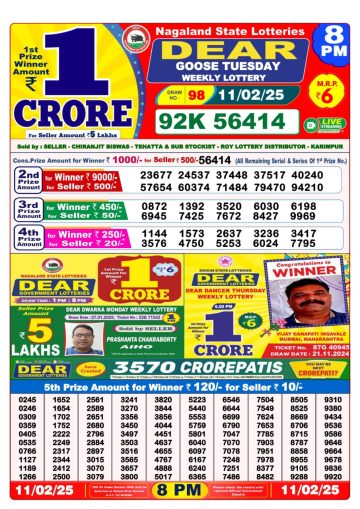 Dear dancer Thursday weekly lottery 6 pm result 13-2-25