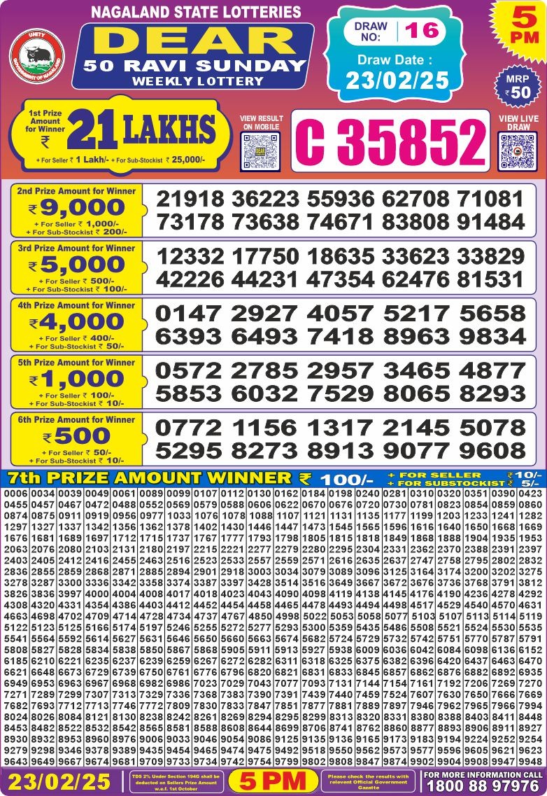 Dear 50 ravi sunday weekly lottery 5 pm result 23-2-25