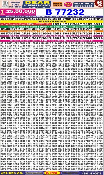 Punjab State Dear 50 Beast Monday Weekly Lottery 29-09-25