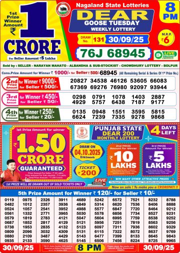 Dear Goose Tuesday Weekly Lottery 8 PM Result 30-09-25