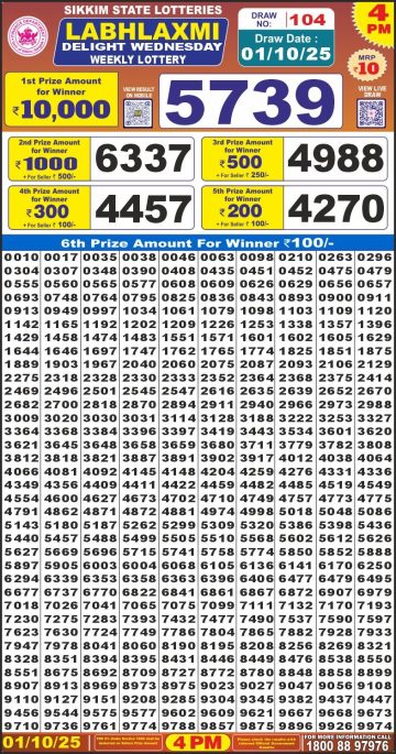 Labh Laxmi Delight Wednesday Weekly Lottery 4 PM Result 01-10-25