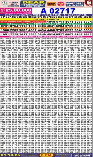 Punjab State Dear 50 colt Friday Weekly Lottery 6 PM Result 03-10-25