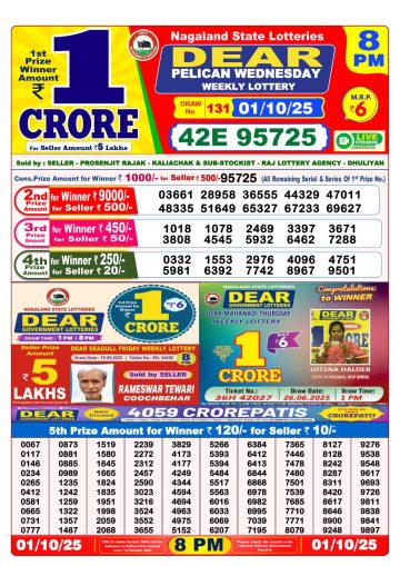 Dear Pelican Wednesday Weekly Lottery 8 PM Result 01-10-25