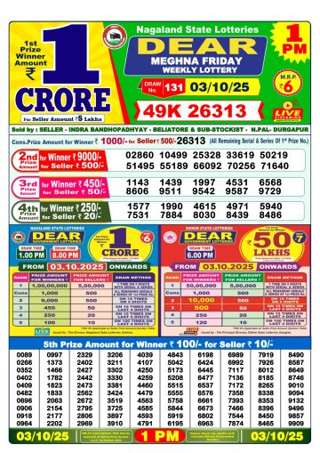 Dear Meghna Friday Weekly Lottery 1 PM Result 03-10-25