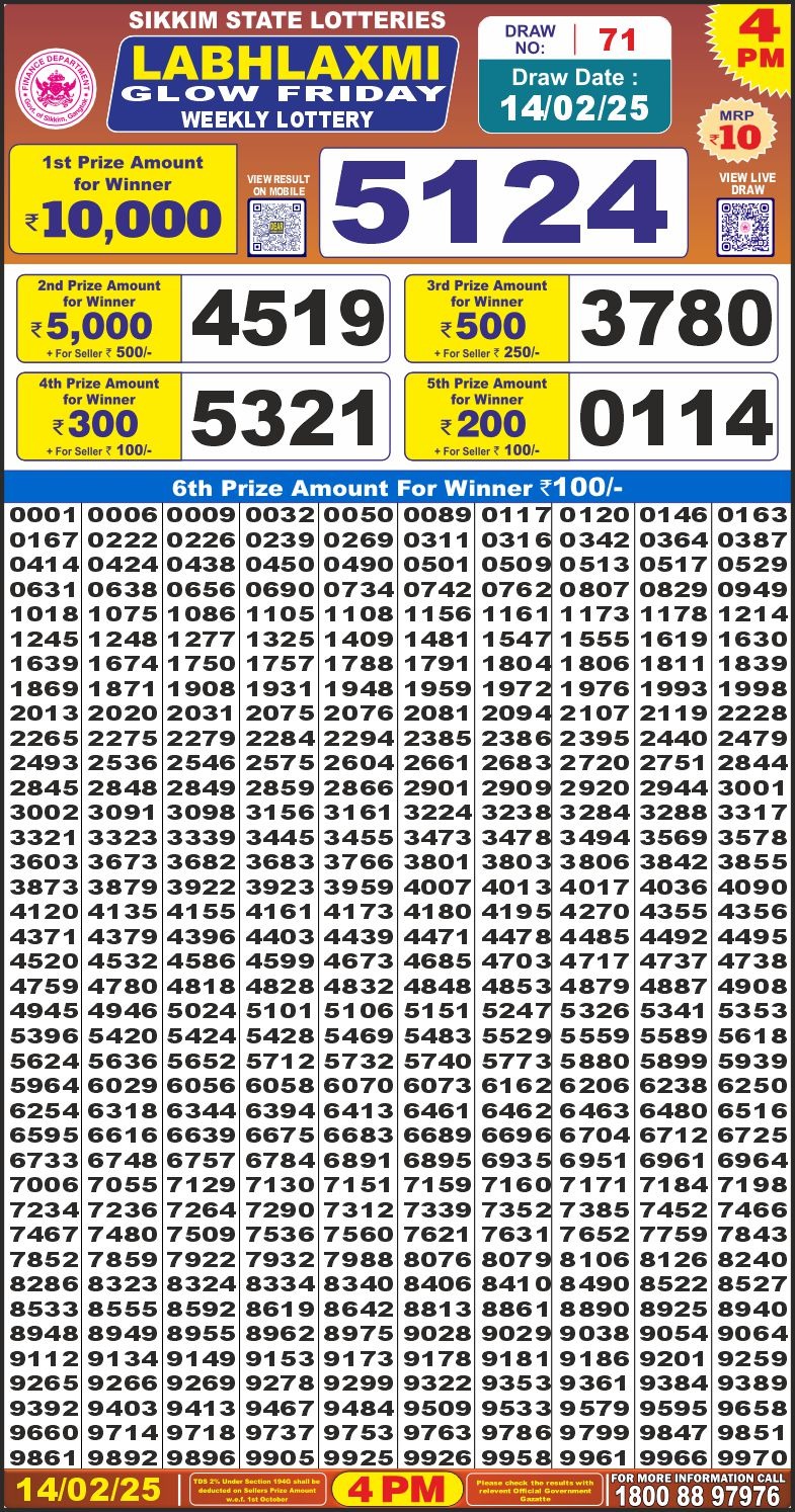 Labhlaxmi glow friday weekly lottery 4 pm result 14-2-25
