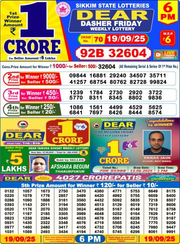Dear Dasher Friday Weekly Lottery 6 PM Result 19-09-25