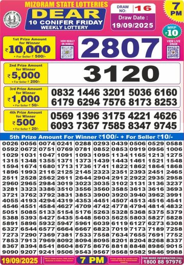 Dear 10 Conifer Friday Weekly Lottery 7 PM Result 19-09-25