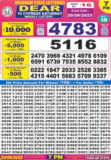 Dear 10 Cypress Saturday Weekly Lottery 7 PM Result 20-09-25