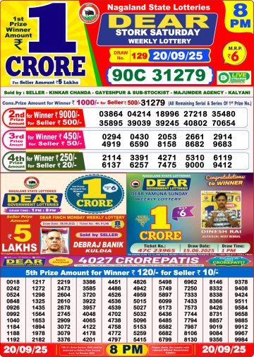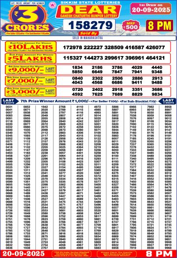 Dear Ganesh Chaturthi Bumper Lottery Result Today 20-09-25 Declared