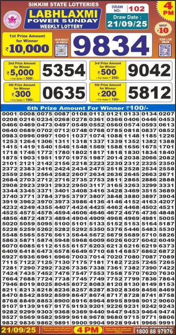 Labhlaxmi Power Sunday Weekly Lottery 4 PM Result 21-09-25