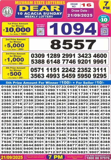 Dear 10 Acacia Sunday Weekly Lottery 7 PM Result 21-09-25