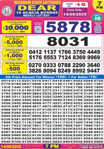 Dear 10 Acacia Sunday Weekly Lottery 7 PM Result 14-09-25