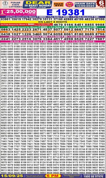 Punjab State Dear 50 Beast Monday Weekly Lottery 15-09-25