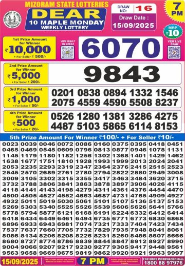 Dear 10 Maple Monday Weekly Lottery 7 PM Result 15-09-25