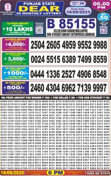 Punjab State Dear 50 Monthly Lottery Result 16-09-25 Declared