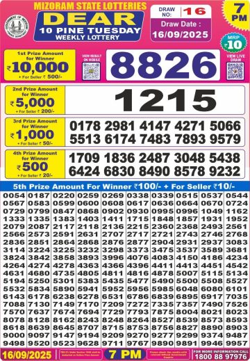 Dear 10 Pine Tuesday Weekly Lottery 7 PM Result 16-09-25