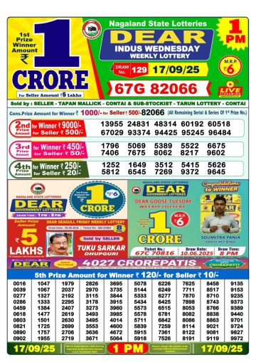 Dear Indus Wednesday Weekly Lottery 1 PM Result 17-09-25