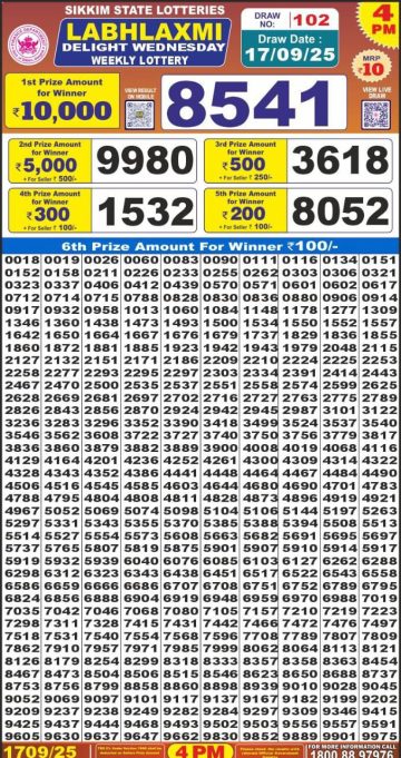 Labh Laxmi Delight Wednesday Weekly Lottery 4 PM Result 17-09-25
