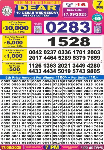 Dear 10 Cedar Wednesday Weekly Lottery 7 PM Result 17-09-25