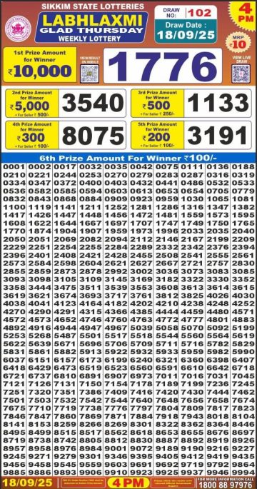 Labhlaxmi Glad Thursday Weekly Lottery 4 PM Result 18-09-25