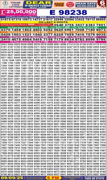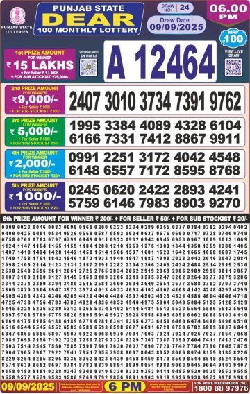 Punjab state dear 100 monthly lottery result 09.09.2025 Publish