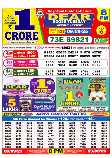 Dear Goose Tuesday Weekly Lottery 8 PM Result 09-09-25