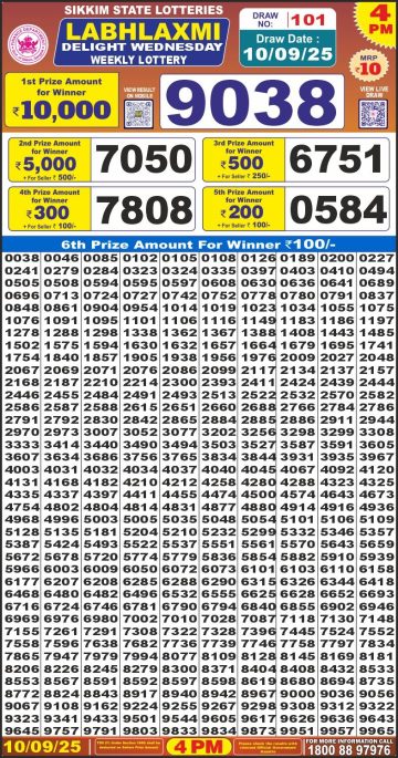 Labh Laxmi Delight Wednesday Weekly Lottery 4 PM Result 10-09-25